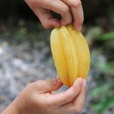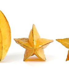 The star fruit makes perfect stars when cut crosswise. It is usually yellow-green to orange in color and contains small seeds. Its flesh has a flavor like a tart plum. It is sometimes called a carambola.